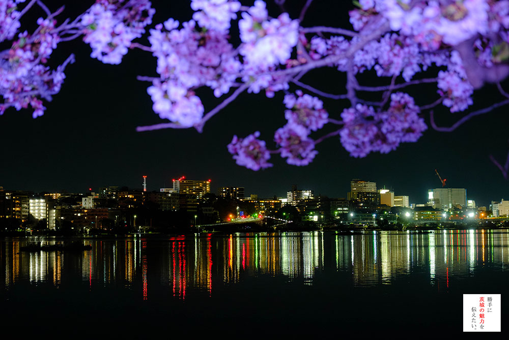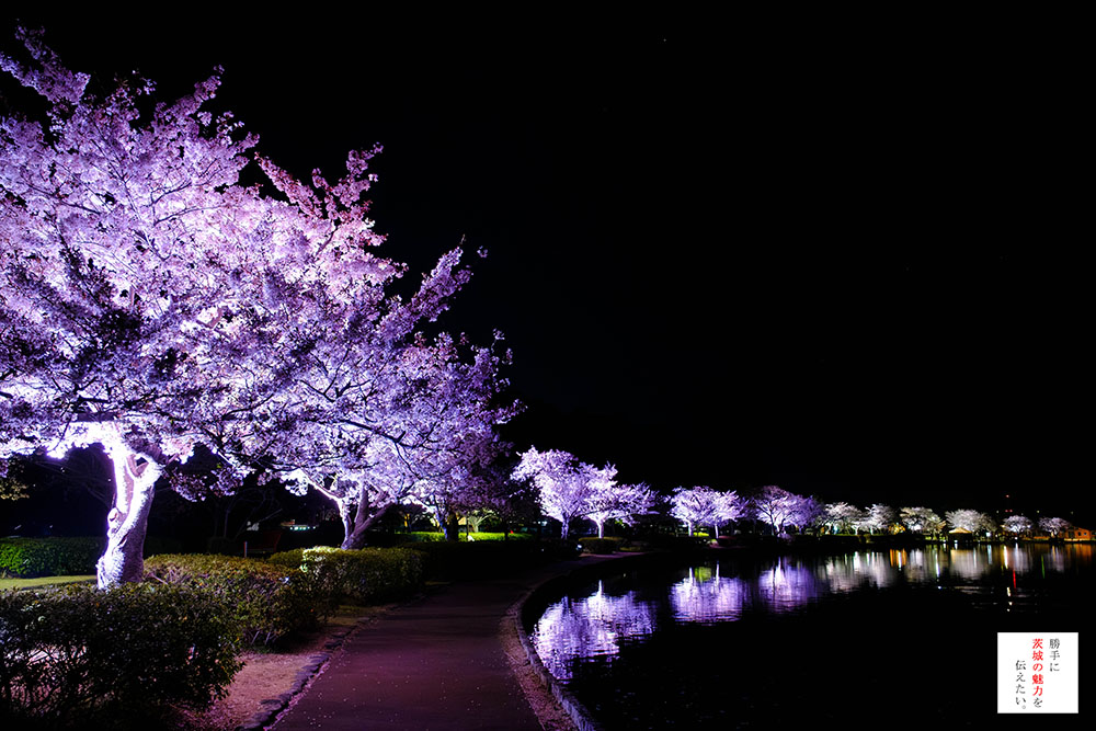 千波湖では2026年4月12日(日)まで、毎晩18:00〜22:00に夜桜のライトアップが行われています。
