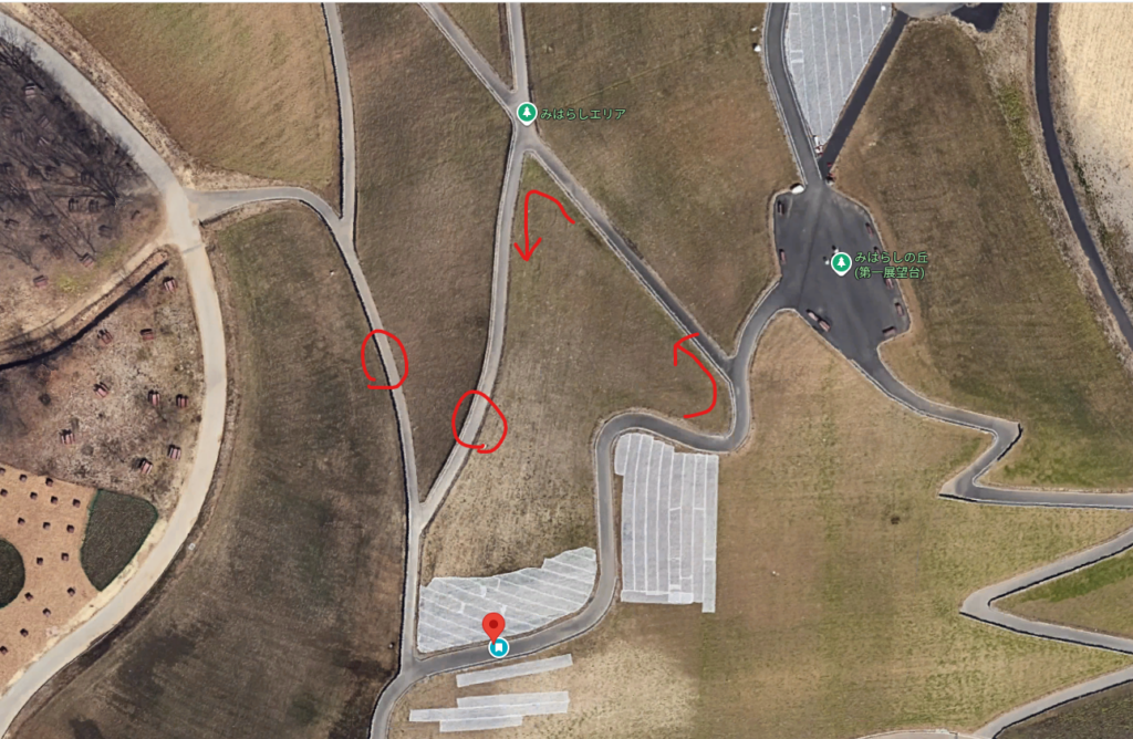 赤いピンが撮影位置で、の位置に立つようなイメージです。